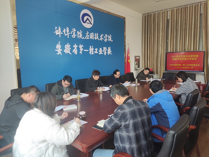 2022年4月1日安徽省第一轻工业学校召开2021年度党支部书记抓基层党建工作述职评议考核会议。党委班子成员、各党支部书记参加会议,会议由党委书记、校长谢红祥主持。