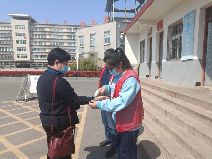 在校园疫情防控工作中,学校各党支部利用党员活动日深入校园防疫第一线,组建“党员先锋岗”。“我是党员,我值守!”“我是党员,我参加!” 通知一下达,全体党员教职工踊跃报名参加,主动要求下沉一线守好“校园安全门”。校党委根据报名情况合理安排值班,做到每天四个党员,每周一个党支部。党员教职工分批次来到校门口,按时到岗认真值守,严格落实“两码一测温”工作,严格出入管理;在学生拿取外卖点,组织学生有序排队,戴好口罩,严格做好消毒工作,守牢守好疫情防控安全“门”。
