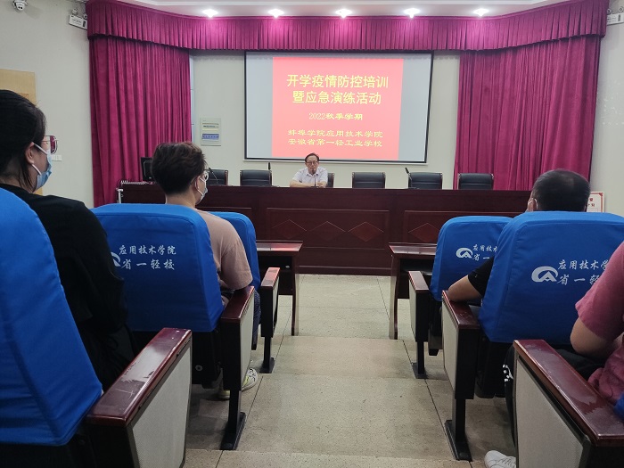为贯彻落实省委教育工委和蚌埠市疫情防控有关部署要求,切实提升学院应对突发疫情的组织管理水平和应急处置能力,9月2日上午,我院开展秋季开学疫情防控应急演练,学院领导、相关处室负责人及全体班主任参加演练。
