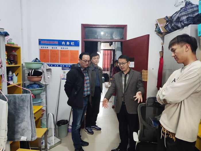 在各处室、各系部办公室、教学楼、宿舍、食堂等相关场所,学院领导班子对其环境卫生进行了全面的检查,指导师生巩固校园安全工作;与学生谈心谈话,宣传校园安全稳定和疫情防控的重要意义,提高学生自我安全管理意识,坚定全体师生抗疫信心,守牢校园疫情输入风险底线。