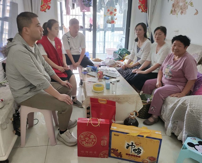 活动中,我校党员志愿者们慰问了天河路社区困难群众、残疾人和空巢老人,提前为他们送去端午节的问候。走访慰问时,党员志愿者们与居民群众通过唠嗑、拉家常,详细地了解了他们的生活情况、身体状况,鼓励他们积极面对生活。志愿者还帮助困难群众打扫卫生,让困难群众的生活更整洁舒心,同时叮嘱他们要保重身体。