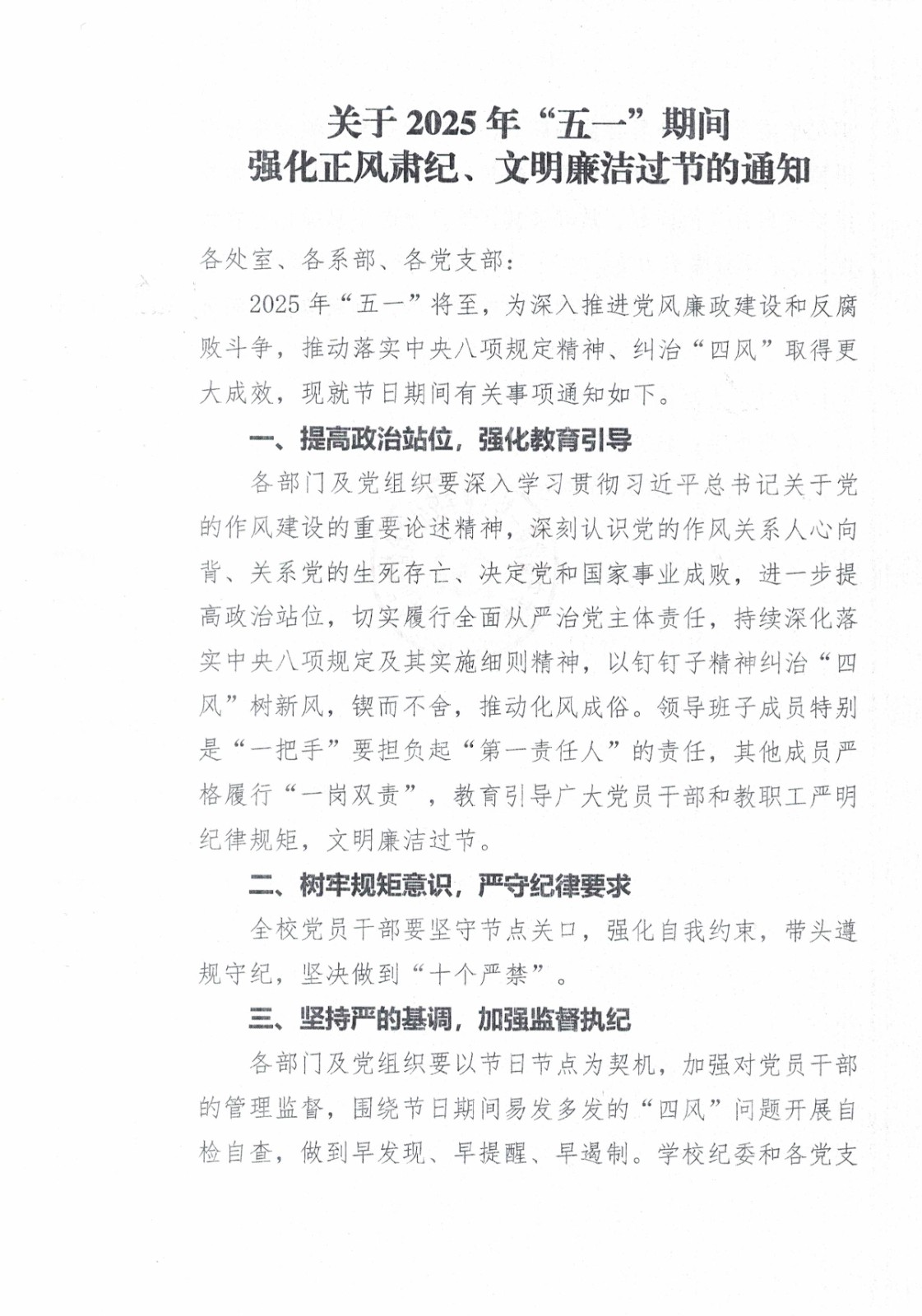 关于2025年“五一”期间强化正风肃纪、文明廉洁过节的通知
