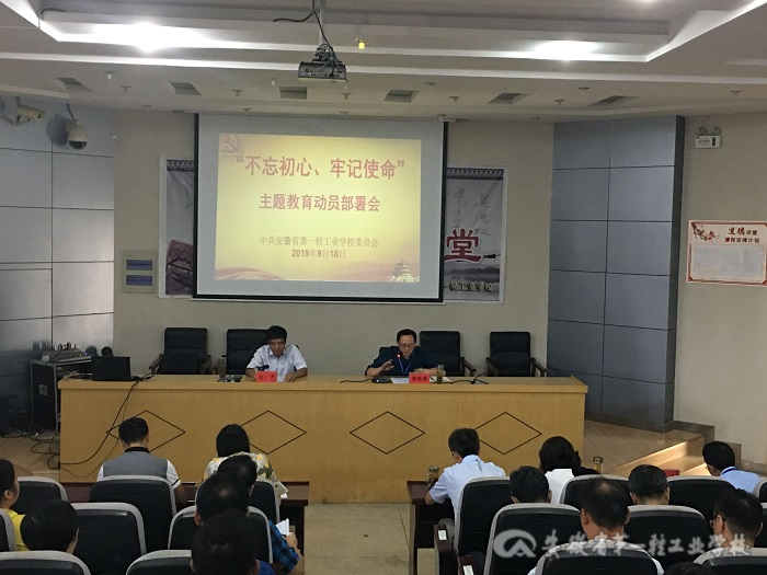会上,谢红祥作动员部署讲话。他强调,要提高政治站位,强化思想认识,充分认清开展主题教育的重大意义。这次主题教育是用习近平新时代中国特色社会主义思想武装全党、推进新时代党的建设的迫切需要,是保持党同人民群众血肉联系、实现党的十九大确定的目标任务的迫切需要;要统一思想行动,把握目标要求,扎实推动主题教育高质量开展。将学习教育、调查研究、检视问题、整改落实贯彻始终;要加强组织领导,压实工作责任,确保主题教育取得实实在在成效。围绕压实主体责任、加强督促指导、坚持统筹兼顾、营造浓厚氛围,扎实推进主题教育。谢红祥要求,学校各级党组织要严格按照中央和省委的部署要求,精心组织、扎实推进,把主题教育开展好,以更加昂扬的状态、更加过硬的作风、更加有力的举措,全面推进学校职业教育事业的发展,努力为全省教育事业发展做出新的贡献,以优异的成绩庆祝新中国成立70周年。