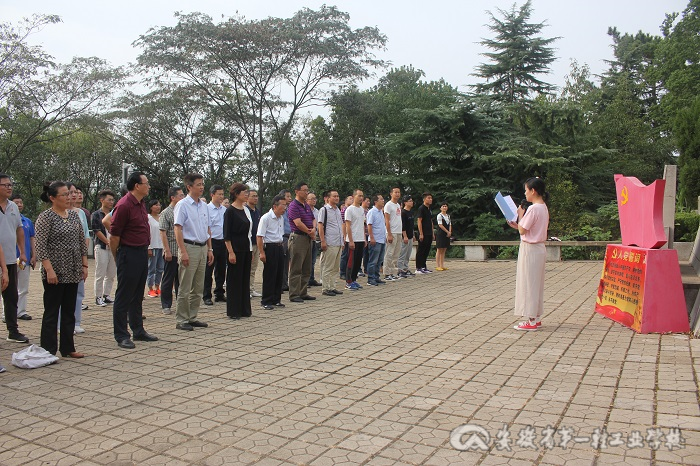 在烈士英雄纪念碑前,全体党员唱起中华人民共和国国歌,并向烈士纪念碑敬献花圈。在校党委书记谢红祥的带领下,全体党员重温入党誓词。宣誓后,全体党员排队绕行革命烈士纪念碑一周。在庄严肃穆的纪念碑下,党员们迈着坚实的步伐,更加坚定了作为党员的责任和义务,更加明确了一名党员怎样的继承和发扬光荣革命传统,肩负起时代赋予的使命。