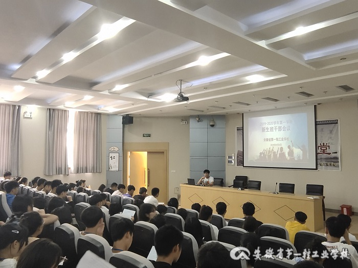 95日中午我校全体新生班级班干部及部分宿舍寝室长在校学生会的组织下,召开了我校新学期第一次班干部会议,会议由学生会主席黄琪升主持。本次会议的主要内容有校学生会各部门负责同学向新生讲解我校学生管理的各项规章制度,以及校卫生区的抽签仪式。