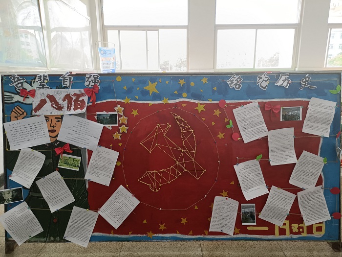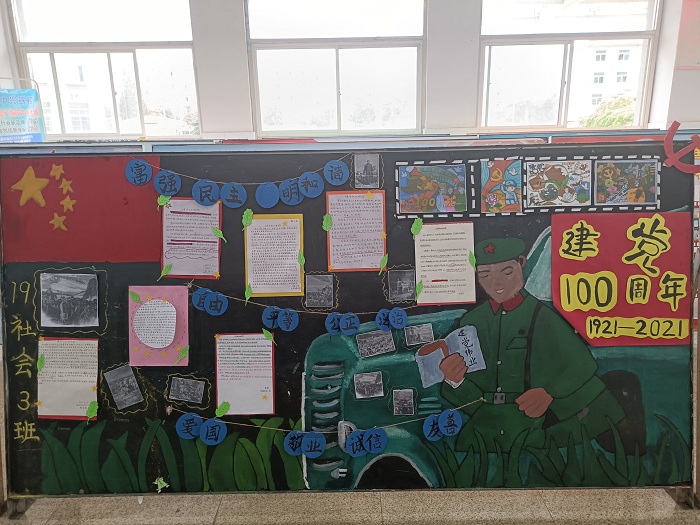 各班级展板设计新颖、活泼、生动,内容丰富多彩,有历史故事、有诗歌、有漫画,从不同角度反映了中国共产党建党100周年的历史、以及各族人民取得的丰功伟绩。