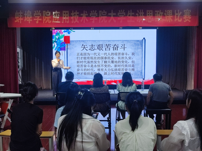 大学生讲思政课决赛活动采用现场赛的形式进行, 由22级、23级各班经过初赛选出的优秀代表团队参赛,最终共有22个作品进入决赛。参赛选手围绕主题,选择《习近平新时代中国特色社会主义思想概论》《毛泽东思想和中国特色社会主义理论体系概论》《思想道德与法治》《形势与政策》《劳动教育》等5门课程中的有关章节或专题进行现场讲课。决赛活动评分采取百分制,评委老师们从教学设计、课堂教学、语言教态等多方面进行现场评分。参赛选手们从“依法治国、科技强军、美丽中国、非遗文化、工匠精神”等多个角度,结合祖国日新月异的发展变化,用丰富生动的社会事例和生活案例讲述中国故事,弘扬中国精神,充分展示了思政课教学一线的别样活力。