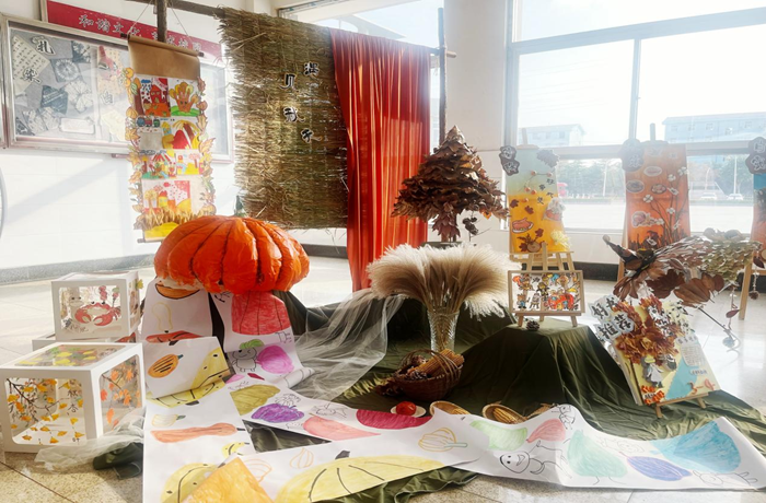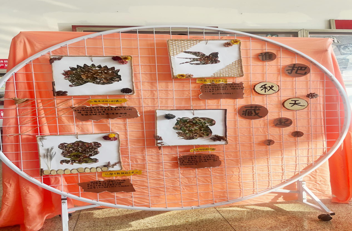 本次展览围绕“秋天”为主题进行环境创设,结合节气进行创意探索,如秋天天气变凉、树叶变黄、果实成熟等创意实践。在提升学生动手能力的同时,培养学生的观察力和思维能力。