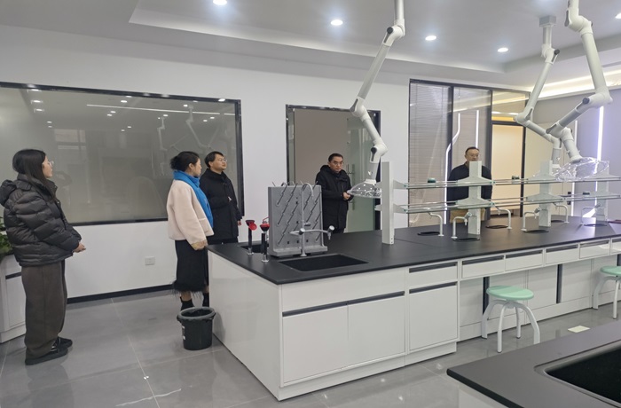 在食品工程系主任王超男陪同下,马龙一行走进了食品工程系化学和烘培实验室。王超男为大家详细介绍了实验室的设备配置、研究方向以及安全管理措施等。马龙对实验室整洁的环境、先进的设备以及严谨的管理表示高度赞赏,并就实验室日常管理、危险化学品的储存与使用等问题进行了探讨。