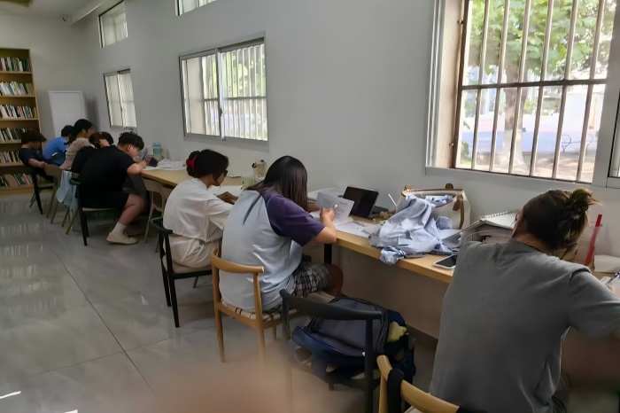 校园里,人头攒动,满是笑语欢声,而图书馆却是安静如旧。同学们或低头看书写题,或指尖轻敲键盘,或戴着耳机认真听着网课。