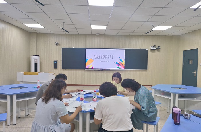 为进一步提升我院学前教育专业人才培养质量,推动专业建设发展,8月24日,教育系在智慧教室组织2023版人才培养方案修订研讨活动。活动由教育系主任王超男主持,蚌埠学院文教学院张玮副教授、禹会区教体局教研室唐少云、恒大翡翠华庭幼儿园园长王晓鸽3位专家莅临指导,教育系专业教师胡爽、张舒作为教师代表参会。