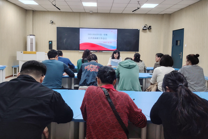 为深入学习贯彻习近平总书记在中央政治局第五次集体学习时的重要讲话精神,进一步加强教师队伍建设,10月26日下午,公共基础部在智慧教室举行教学工作会议。会议由系部主任李冬梅主持。