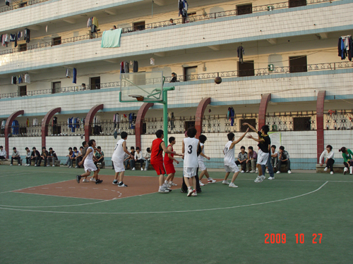 为了丰富学生的课余生活,增强学生的体质,陶冶学生的情操,增进学生间的情感交流,培养学生的集体荣誉感。2009年10月27日下午,我校08仙鹤班和08机电(1)班在校篮球场进行了一场激烈的篮球友谊赛。