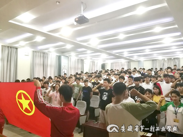 入团宣誓仪式由校团委组织委员邵海洋同学主持,175名新团员面对鲜艳团旗,举起右手庄严宣誓:“我志愿加入中国共产主义青年团,坚决拥护中国共产党的领导,遵守团的章程……为共产主义而奋斗。”青春的誓言气势高昂,表达了同学们对共青团组织的无限向往和为团组织增光添彩的信心与决心。