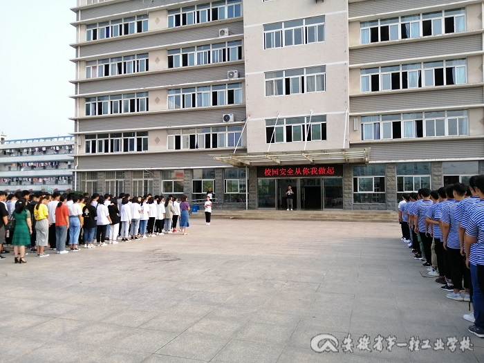 本周升旗仪式的主题为“校园安全从你我做起”。升旗仪式开始后,在雄壮的入场式曲中校国旗队同学迈着整齐而又坚定的步伐,将国旗一步步护送至旗杆处。当庄严的国歌响起,全体在场教职工与学生的目光纷纷投向那面鲜艳的五星红旗之上,注视着五星红旗冉冉升起。升国旗仪式结束后,由校学生会代表李龙水同学作国旗下演讲。在演讲中李龙水同学首先介绍了校园安全的重要性,然后分别从校园学习生活中的人身安全、食品安全、交通安全、用电安全、防盗防骗安全、网络安全等几个方面介绍了校园安全的注意事项及常见的安全问题。最后他发出“让我们一起做校园安全的守护者和实践者”的倡议。通过李龙水同学的演讲让在场的老师和同学们进一步增加了校园安全知识,强化了安全意识,规范今后的学习生活中的安全行为,为接下来的新学期学习生活夯实了安全基础。