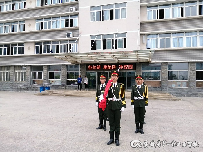 为保护在校大中专学生的生命财产安全,维护校园的安全与稳定,10月14日上午,我校开展了以“拒传销 避陷阱 净校园”为主题的升旗仪式,全校师生参加了活动,升旗仪式由18高职计算机2班承办。