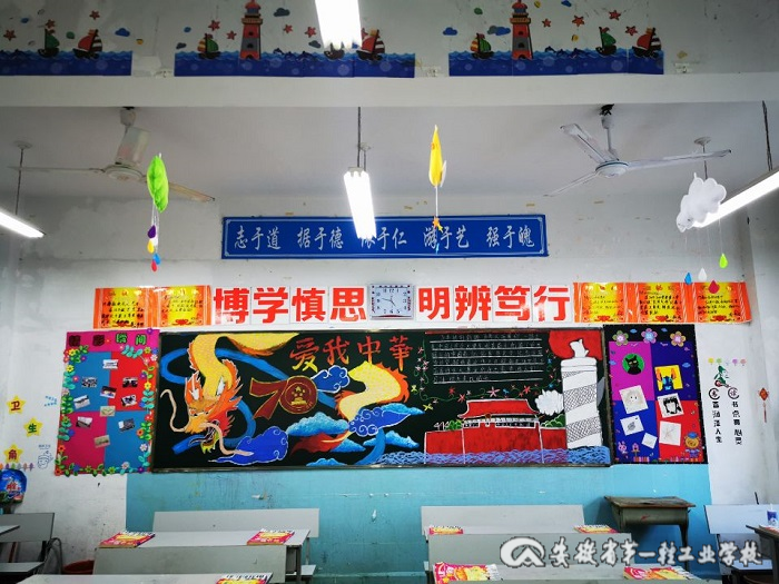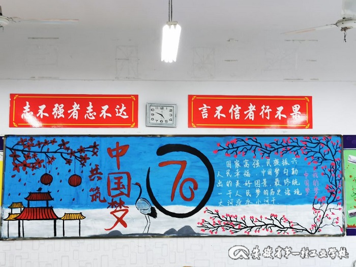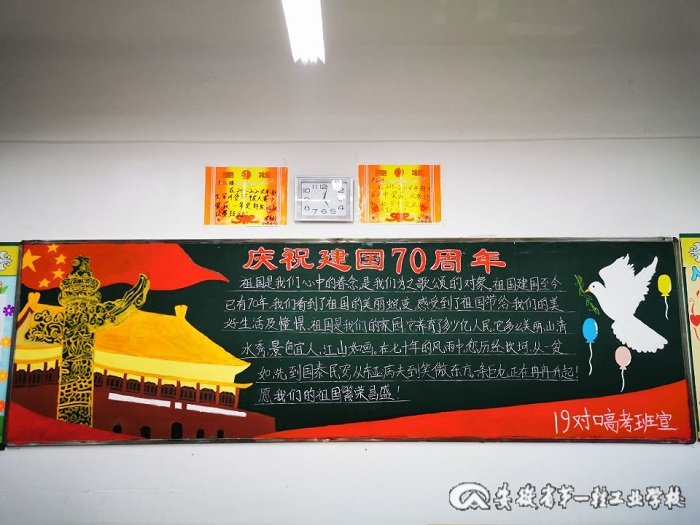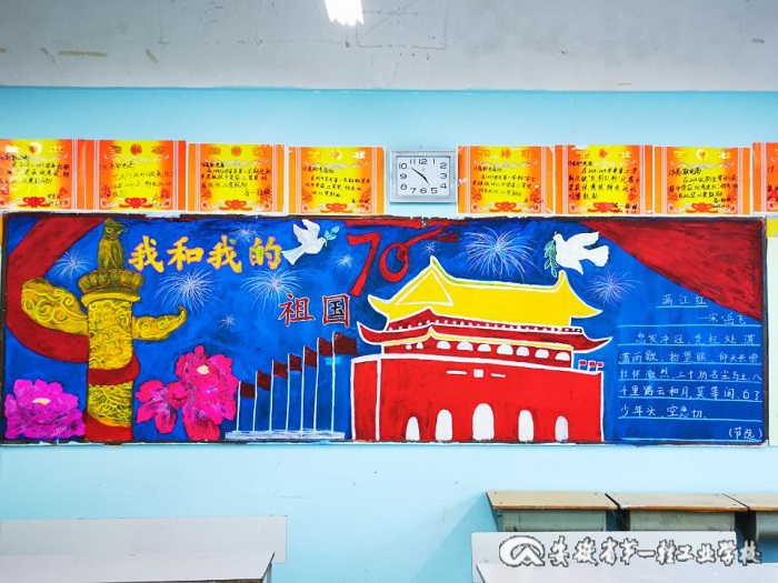 在校学生处的统筹安排下,各班级积极响应,踊跃参与,精心准备。各班弘扬正能量共筑中国梦主题入手形式多样,融时代性、教育性为一体,激发了同学们的民族自豪感和责任感。学生们把对祖国母亲的祝福融入到了黑板报的设计之中。“爱我中华”“我和我的祖国”“中国梦”“举国欢庆,军民同乐”等等内容竞相出现在一块块黑板之上,通过学生们精心设计让这一块块黑板成为了一个个会“说话”的爱国主义教育阵地。一幅幅精美的板报,献礼祖国七十华诞,展现了一轻学子对祖国的热爱。