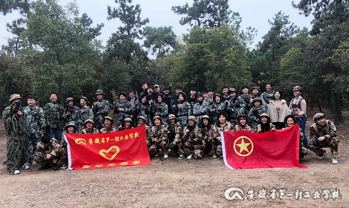 18高职电商班“纪念新中国成立70周年”爱国主义教育系列之真人“CS 对抗赛”拓展训练和班级志愿者服务活动,于1130日早上在蚌埠老虎山森林公园如期进行。