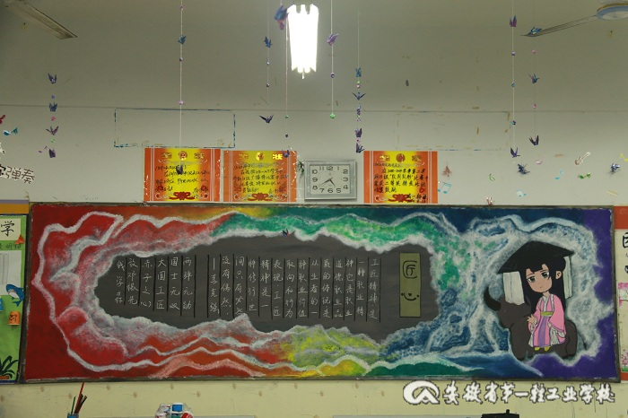 本次黑板报要求设计内容切合主题,突出筑匠心,秀风采的主题教育内容。为此,各班级均做到了认真对待,积极筹备,在各班班主任们带领下,学生们在黑板上绘制出了一幅幅风格不同,形式各样的高质量作品。