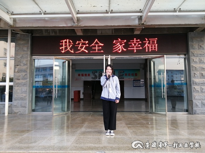 升旗仪式结束后裴瑞雪同学作以“我安全,家幸福”为主题的国旗下演讲。裴瑞雪通过大量的案例,向全体师生展示出校园安全和个人安全的重要性。她呼吁全体学生加强安全意识,增强防范风险的能力,在日常生活中把安全牢记心中!