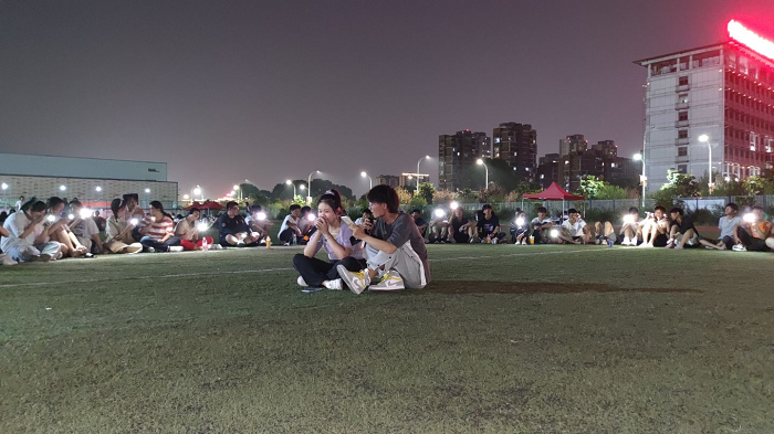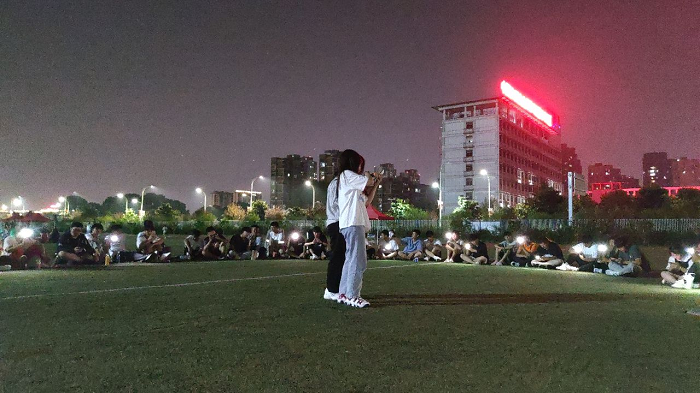 9月26日晚7点,应用技术学院操场灯光闪耀,到处洋溢着欢快爽朗的笑声,“千声万籁,与我同行”新生联谊晚会在这里隆重举行。此次活动参加者不仅有21电子商务专1班和专2班的新生,还吸引到在操场上锻炼、散步的同学一起参与到活动中来。