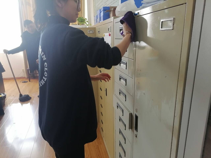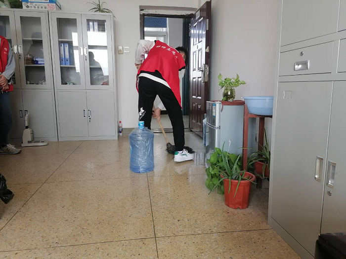本次活动任务是为行政楼教师办公室打扫卫生及为饮水机换水。活动开始之前,同学们先明确分工,确定好每组同学所负责的办公室,然后再集体行动。活动中同学们充分发挥不怕苦、不怕累的志愿者精神,门框边、桌椅旁、饮用水房内,随处可见同学们忙碌的身影。小小的红马甲穿梭在走廊里、校园间,为学院增添了一抹热情活泼的色彩。