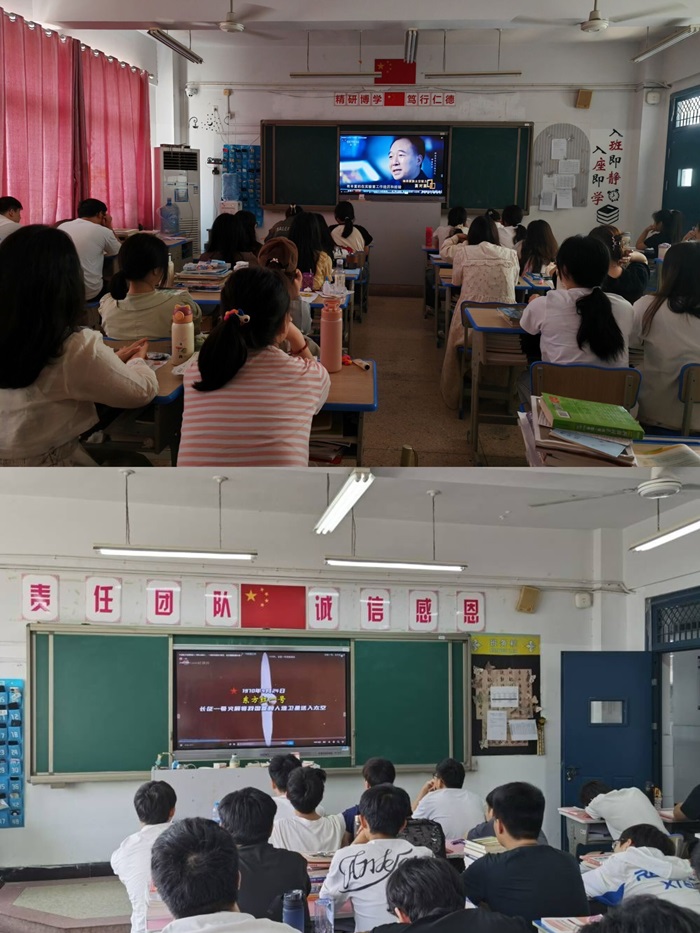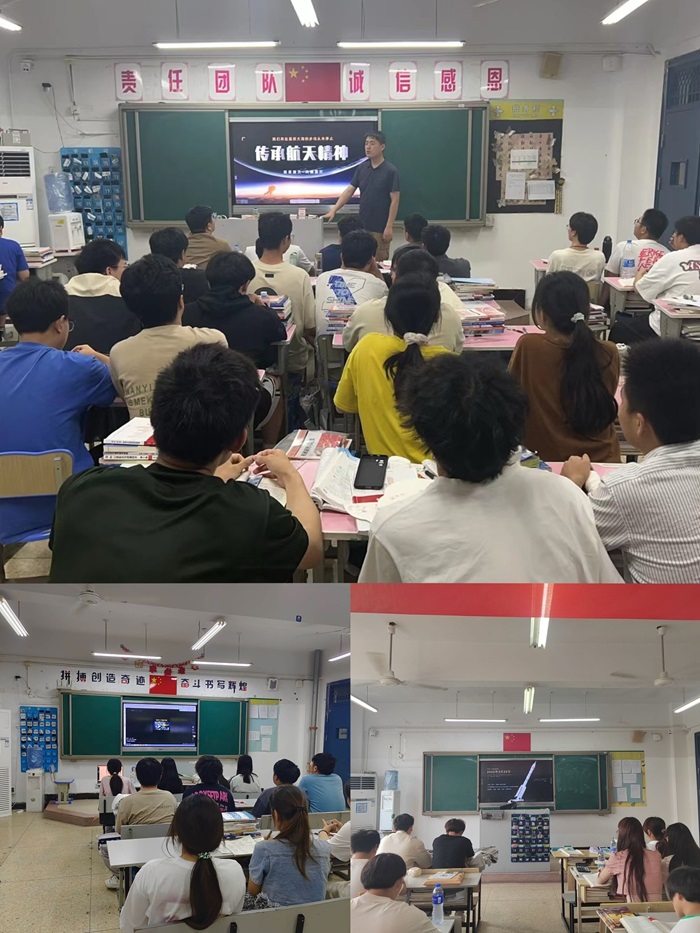 主题班会上,辅导员带领同学们学习了《中共中央 国务院 中央军委关于给景海鹏颁发“特级航天功勋奖章”授予朱杨柱、桂海潮“英雄航天员”荣誉称号并颁发“三级航天功勋奖章”的决定》。先后从“两弹一星”和“载人航天”两个方面介绍了中国科研事业的发展历程、其中穿插了视频更加生动地加深了同学们对“两弹一星”精神、载人航天精神的形成背景、实质内涵的深刻了解。