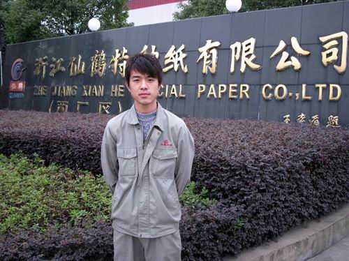 宋洋洋同学是我校05级机电技术应用专业学生,于2007年4月19日被浙江仙鹤特种纸公司录用,分配到机电修理分厂当电工,因工作需要后又调至造纸三分厂。