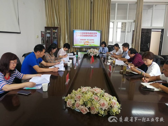 为认真贯彻落实《中华人民共和国国家通用语言文字法》和教育部、国家语委《关于进一步加强学校普及普通话和用字规范化工作的通知》等文件精神,9月25日上午,蚌埠市教育局语言文字工作委员会检查组赵芳等一行4位专家来我校进行语言文字工作达标建设进行专项检查。校长谢红祥,副校长方军、李青云及语言文字工作委员会相关成员参加了此次检查工作。